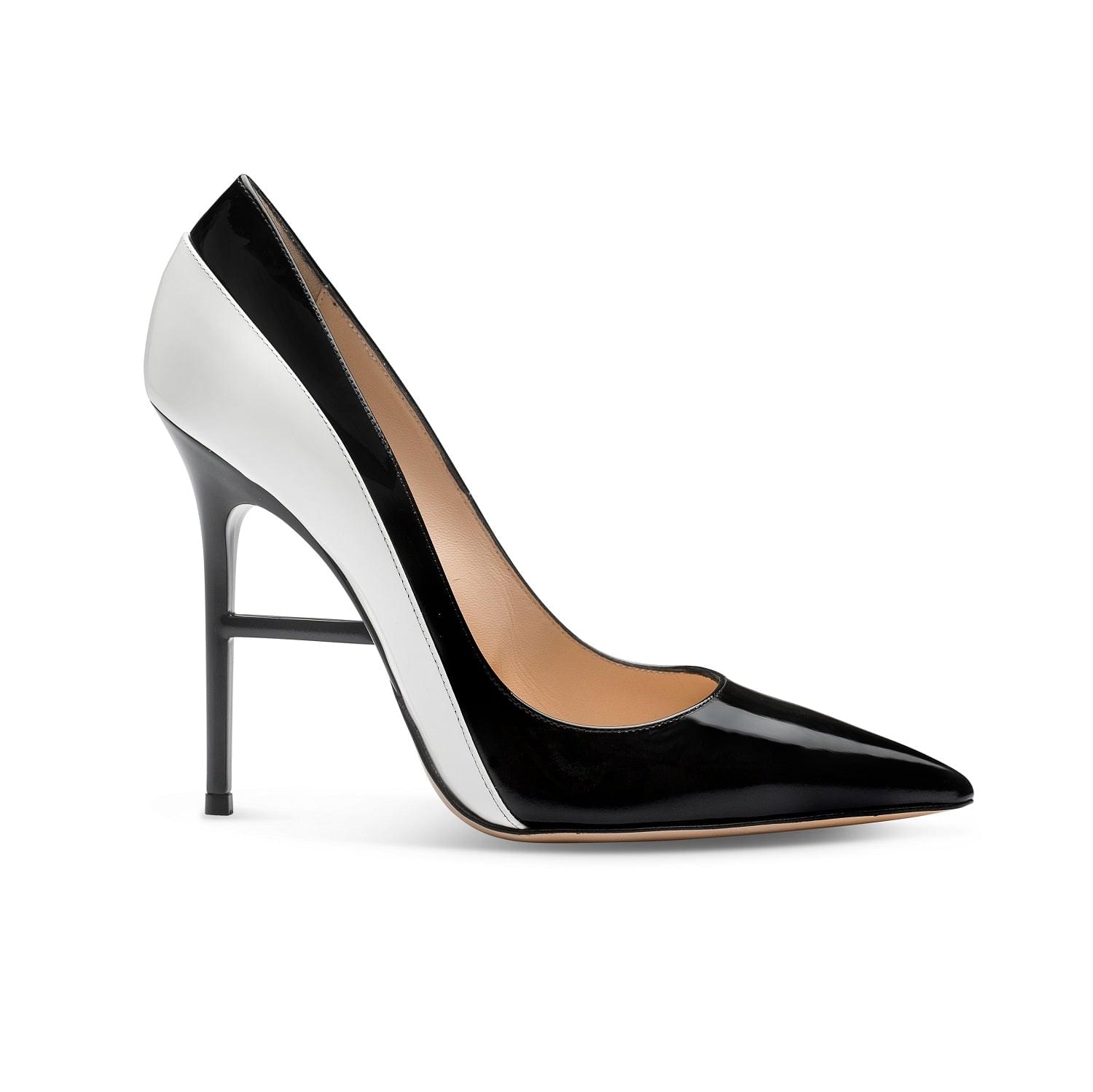 Black and white patent leather with an ‘A’ black heel / leather sole / Heel height: 12.5 cm / Italian Fit / True to size