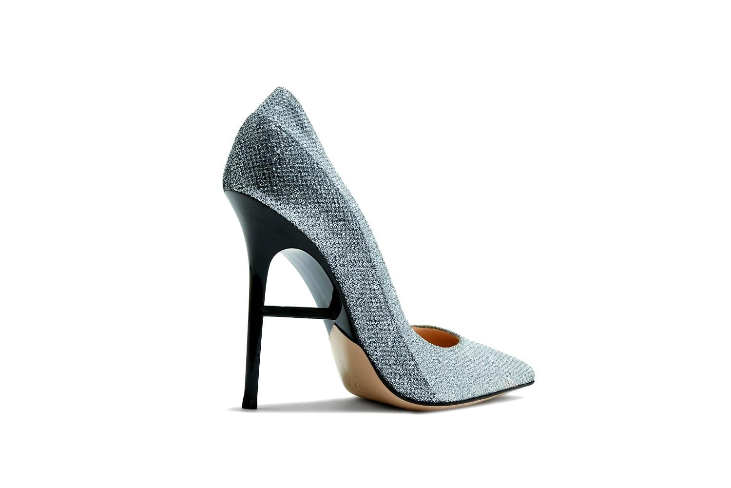 Silver & Dark Silver Sparkel with and an ‘A’ black heel / leather sole / Heel height: 12.5 cm / Italian Fit / True to size